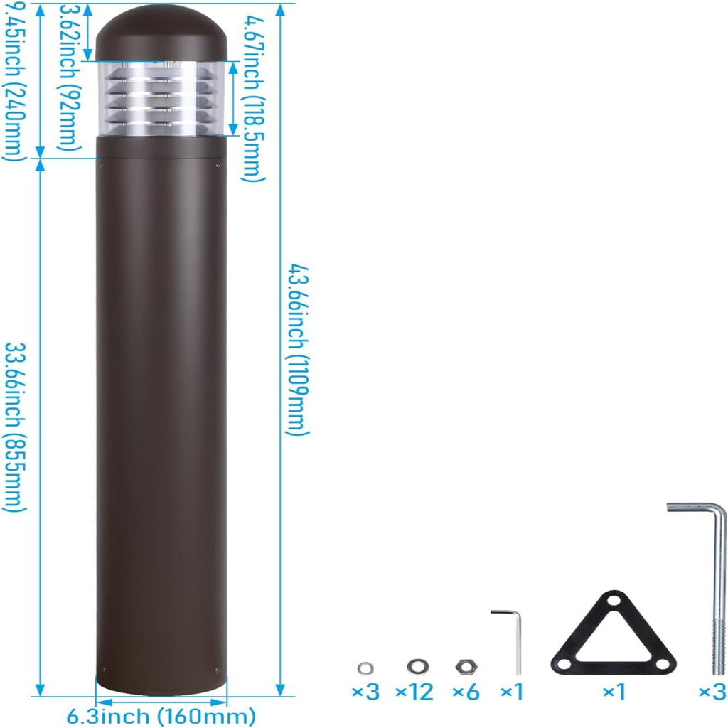 43" Commercial LED Bollard Path Light, Louvered Lens Head