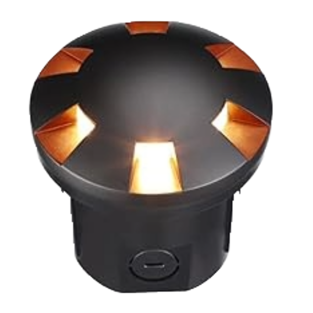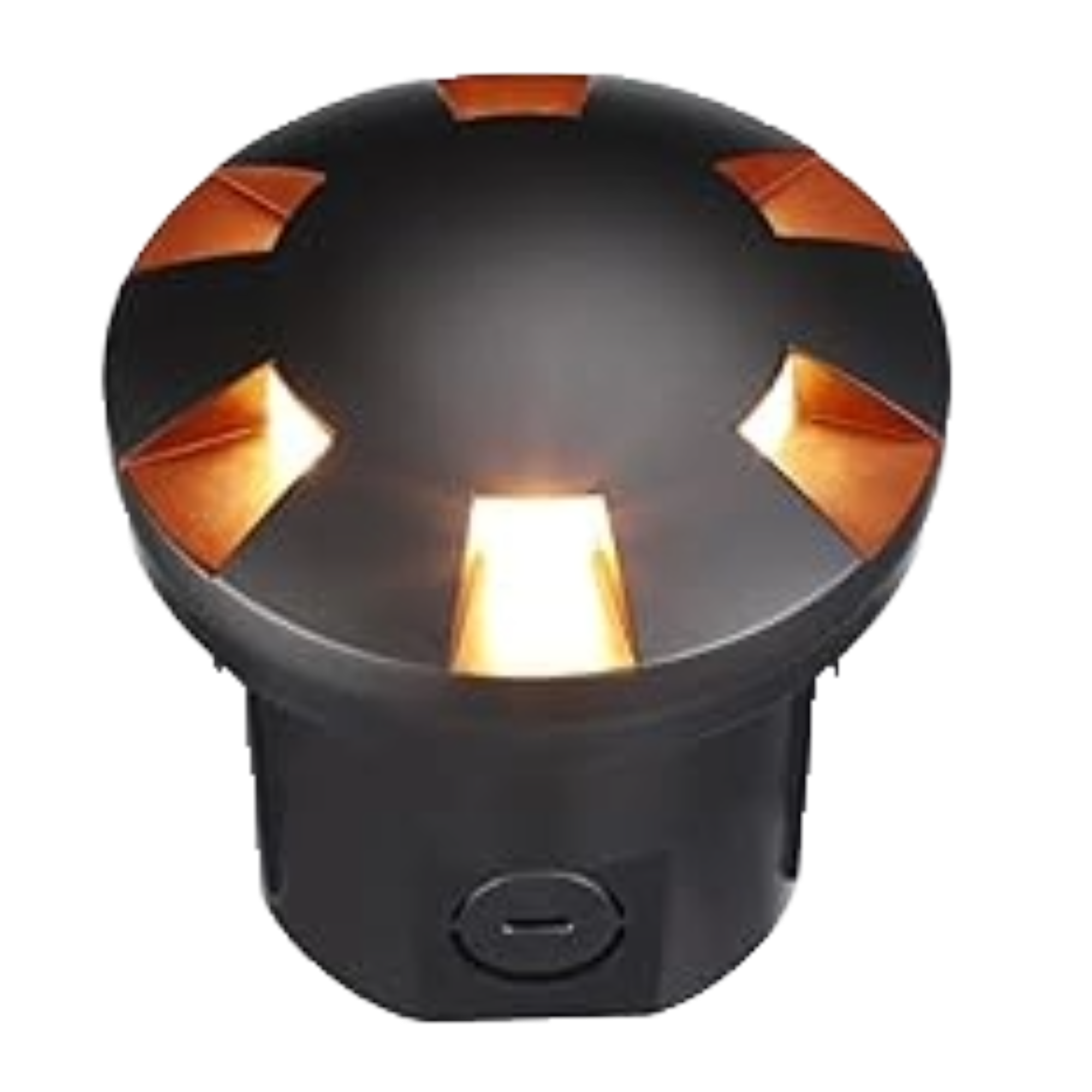 Six-sided in-ground well light that creates soft, 360° landscape illumination with selectable white tones.