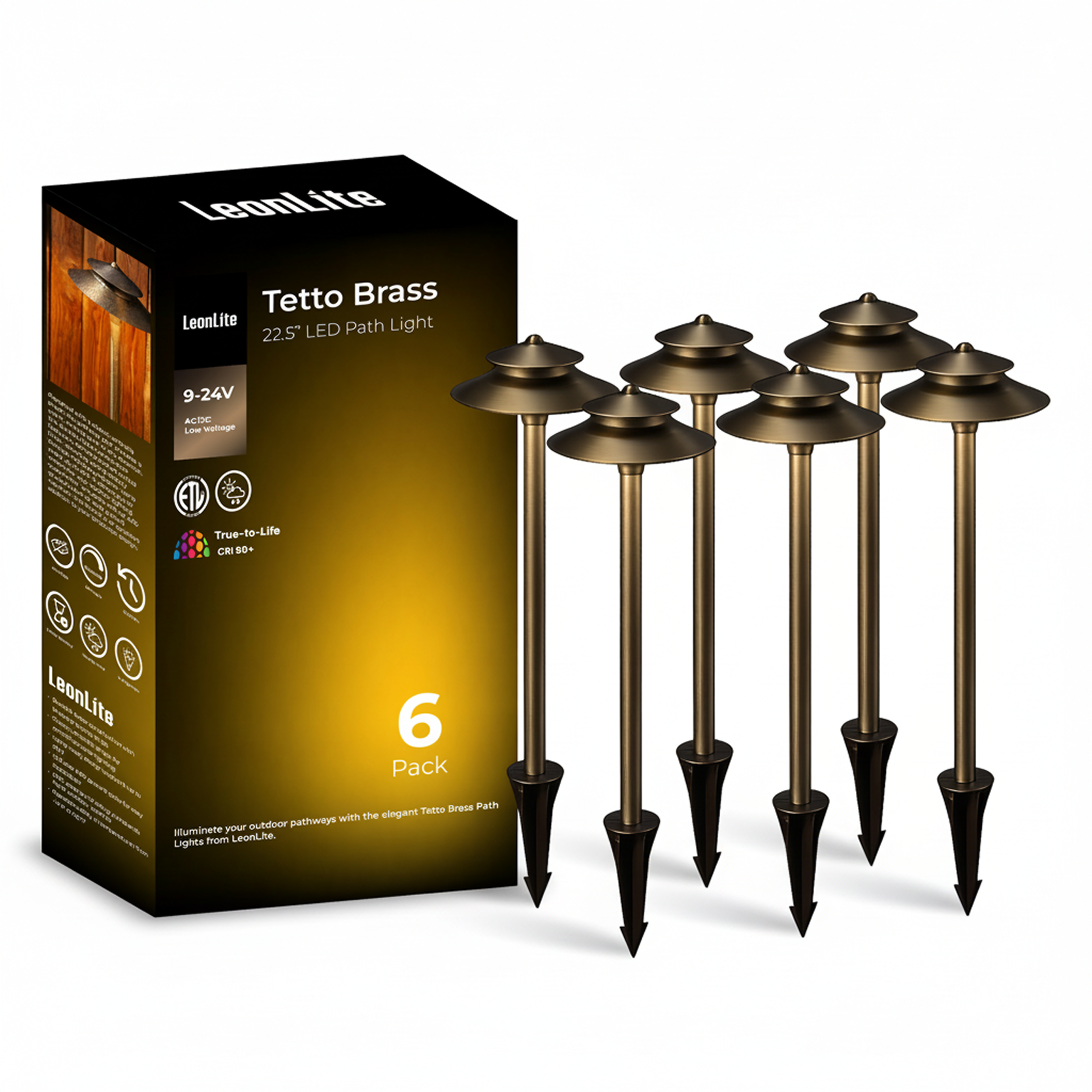 Illuminate your outdoor pathways with the elegant Tetto Brass Path Lights from LeonLite. Designed with a classic umbrella shape, this pathway light provides a warm, inviting glow in any direction. The durable brass construction features a refined brushed bronze finish, ensuring lasting beauty through changing seasons. Lamp ready up to 20W, it allows you to customize your outdoor lighting experience. Complete with an ABS ground spike for easy ground insertion, this fixture is an excellent addition to your landscape design.